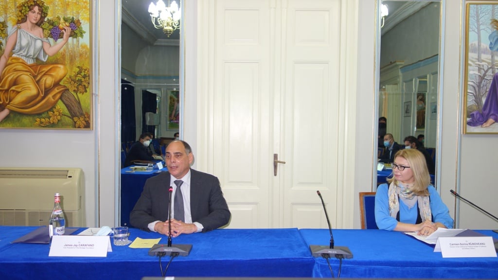 În data de 21 octombrie a.c., Institutul pentru studii politice de apărare și istorie militară și Consiliul Euro-Atlantic România (ATA România) au organizat o dezbatere cu tema „Current Dynamics in Regional and International Security. Future Perspectives in the Black Sea Region”, avându-l, în calitate de invitat special, pe Dr. James Jay Carafano. Dr. Carafano este vicepreședinte în cadrul Fundației Heritage din SUA, expert recunoscut pe probleme de securitate, autor al unor lucrări de prestigiu și un reputat cunoscător al mediului strategic și de securitate din zona extinsă a Mării Negre. De asemenea, la discuții a mai participat, din partea Fundației Heritage, Dr. Anthony B. Kim, expert în științe economice. În cadrul discuțiilor, au fost abordate o serie de aspecte legate de situația de securitate în regiunea Mării Negre, dinamica relațiilor transatlantice, politica externă a Statelor Unite ale Americii, precum și Parteneriatul Strategic româno-american. Mesajul expertului american a fost axat pe necesitatea ca actorii regionali să joace un rol mai activ în construirea unei platforme regionale de cooperare care să permită creșterea nivelului de securitate, precum și extinderea oportunităților în domeniile economic și de afaceri care să încurajeze o prezență mai consistentă a SUA în regiune. În acest sens, a fost menționată Inițiativa Celor Trei Mări care ar putea constitui o importantă axă de cooperare regională, cu un rol proeminent pe dimensiunea securității