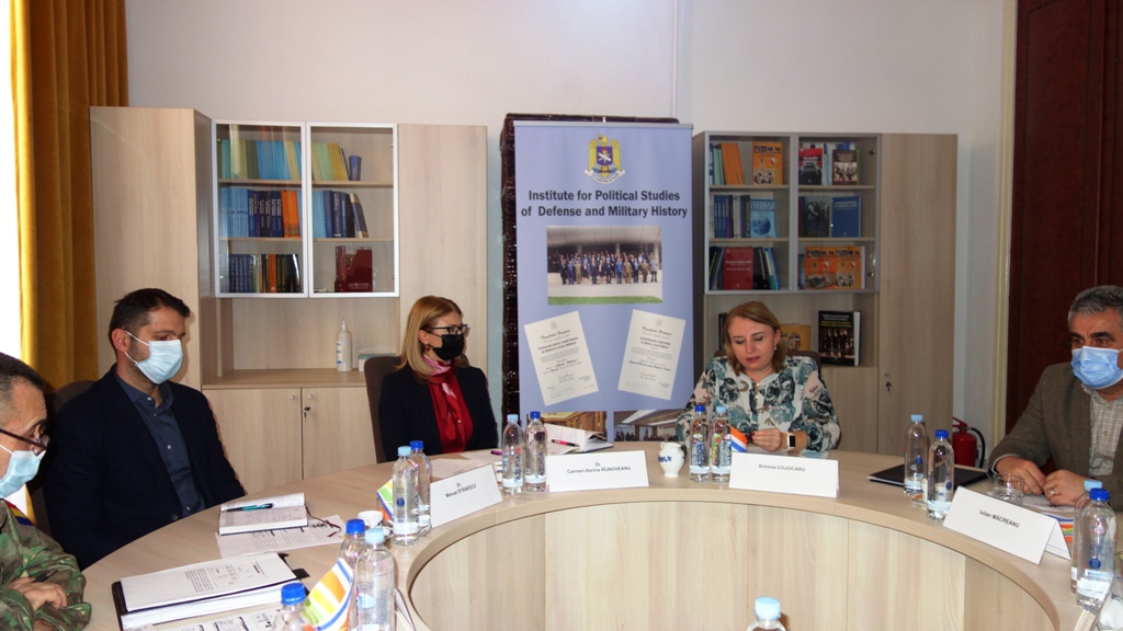 La sediul Institutului pentru studii politice de apărare și istorie militară, s-a desfășurat astăzi, 15 februarie, ședința de autoevaluare pe anul 2021. Activitatea s-a desfășurat în prezența doamnei Simona Cojocaru, secretar de stat și șef al Departamentului pentru politica de apărare, planificare și relații internaționale. Directorul institutului, dr. Carmen-Sorina Rîjnoveanu a prezentat principalele activități desfășurate anul trecut în domeniile de competență – istorie militară, studii de securitate și politică de apărare - și au fost conturate prioritățile pentru anul 2022.